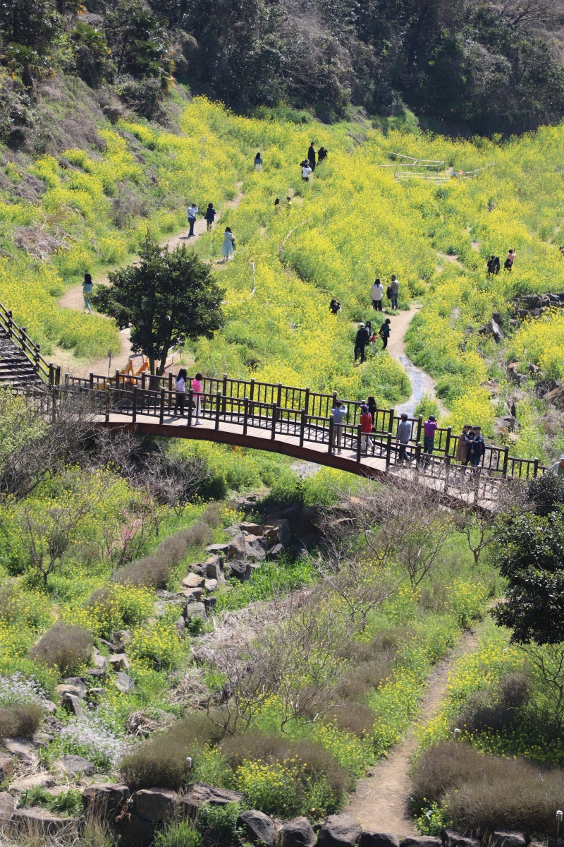 그렇다고 주상절리를 볼 수 없는 것은 아니었다. 무료 관람 산책로를 따라 걷다 보면 조금 멀리 있는 대포 선상 절리가 보였다.그래도 아쉬움이 꽤 컸는데 날씨는 또 얼마나 좋았는지~ 바람도 잔잔하던 날 야자수와 푸른 하늘이 어우러진 풍경이 위로가 됐다.산책로를 돌아 나오니 그동안 막혀 있던 반대편 길이 열려 있었다. 이번에 새로 공사한 뒤 개장한 것 같아 언덕을 내려가 보니 몽돌해변이 나왔다.자갈 구르는 소리가 기분 좋게 들리는 둥근 몽돌해변이었다. 그동안 제주도에서는 구멍이 뻥 뚫려 날카로운 현무암만 보던 둥근 돌을 보면 얼마나 신기했는지~ 제주 중문에 가볼만한 곳으로 인기가 많을 것 같았어.자갈 위에는 귀여운 인형이 전시돼 있어 아쉬운 여행자들의 마음을 이렇게나마 달래주는 듯했다. 바야흐로 대포 주상절리의 또 다른 포인트가 될 것 같았다. 2. 중문고등어삼밥 제주도 서귀포시 일주서로 12401층중문고등어채소쌈밥 제주특별자치도 서귀포시 일주서로 12401층⊙ 영업시간 : 09:00 ~ 20:30중문관광단지를 비롯해 중문에 있는 제주도 관광지를 더 둘러볼 생각으로 주변 호텔에서 1박을 하고 다음날 아침 식사를 하기 위해 고등어 쌈밥집으로 향했다.아침 9시부터 문을 열었으며 고등어조림과 고등어구이, 감돔구이, 전복돌솥밥, 수제돼지까지 메뉴가 많아 제주 중문단지로 아침식사를 하러 가기에 딱 좋은 곳이었다. 오픈하자마자 갔는데 먼저 온 손님이 있어서 깜짝 놀랐어.일단 기본 반찬부터 합격점! 반찬 하나하나가 짜지 않고 입맛에 잘 맞았다. 아삭아삭한 연근과 무나물, 지금도 맛있는 브로콜리까지 건강한 식탁이었다.감돔구이와 묵은지 고등어쌈밥, 전복구이에 수제돈가스까지! 거기에 밥은 전복돌솥밥으로 나왔고 그야말로 상다리가 부러지는 모습이었다.큰 옥돔구이도 한 마리가 바삭바삭 잘 구워져 있다. 옥돔구이를 먹어본 사람답게 꾹꾹 숟가락으로 누른 뒤 뼈를 빼고는 고기를 자주 발라 먹어봤는데 쫄깃한 식감에 옥돔 향이 가득 퍼졌다. 제주도 중문에 가볼 만한 곳을 찾는 우리 젓가락이 분주하게 움직였다.밥은 이렇게 갓 지은 돌솥밥으로 나오자마자 밥을 섞어 제거한 뒤 물을 부어 놓지 않으면 누룽지를 제대로 즐길 수 있다. 밥 위에 톳과 전복 양념이 들어가고 내장에 양념을 한 전복이 들어가 고소함이 작렬했다.가장 메인인 묵은지 고등어 조림은 조리가 완료된 형태로 나오는데 밑에는 고등어와 무가 깔려 있고 그 위에 묵은지가 이불처럼 덮여 왔다.싱거운 냄새도 없이 정말 제대로 익힌 묵은지라는 것을 알았지만 푹 삶아 젓가락만 가져와도 부드러움이 느껴졌다.큼직한 고등어가 여러 마리 들어 있었지만 고등어도 양념이 제대로 들어가 있어 먹음직스러운 색깔을 보여줬다. 무도 살짝 익어서 입안에서 녹는 식감이었다.전복돌솥밥을 한 입 먹은 뒤 고등어를 올리고 그 위에 묵은지를 얹어 먹으면 입안에서 연회가 펼쳐졌다. 고소한 전복과 고등어와 김치의 조합은 말이 필요 없는 조합 같았다.전복은 버터에 구워 나오는데 먹기 좋은 사이즈로 썰어 고등어와 밥과 함께 먹으면 조화를 이뤘다. 입안에 버터향이 가득했고 무엇보다 매우 부드러웠다. 제주 중문에 가볼만한 곳에 가서 많이 먹어봤는데 여기가 최고인 것 같아!!제주산 돼지고기로 직접 만든 수제 돈가스는 반찬으로 먹고 싶어서 주문했는데, 큼직한 두 조각이 꽤 두꺼워 소스에 찍어 먹었더니 두꺼운 돈가스의 맛이 제대로 느껴졌다. 3. 천제연폭포 제주도 서귀포시 천제연로 132천제연폭포 제주특별자치도 서귀포시 천제연로 132 천제연폭포관리소⊙ 영업시간: 09:00~17:20식사 후 찾은 곳은 중문관광단지 볼거리로 유명한 천제연 폭포이다. 제주 중문단지 안에 위치하고 있어 산책로를 따라 걸으며 3개의 폭포를 볼 수 있다.폭포는 상·중·하 3단 폭포로 되어 있는데, 맨 위 제1폭포는 길이 22m 수심 21m의 늪을 이루고 있다. 주상 절리가 형성되어 있으며 하늘색이 아름답기로 유명한 천제연의 대표 폭포이다.폭포이지만 물이 쏟아지는 것은 볼 수 없지만 비가 많이 와야 폭포가 쏟아지는 것을 볼 수 있다고 설명되어 있다.1폭포를 보고 2폭포로 가는 길은 계단을 지나 강 옆을 지나는데 주변은 난대림 지대가 형성되어 있어 겨울에도 푸르스름한 나무들이 우거져 있었다.제주도 추천 또는 제주 중문에 가볼 만한 곳으로 유명한 곳임에도 불구하고 사람이 많지 않은 시간이어서 매우 여유로웠다. 나무들이 굽은 모습과 졸졸 흐르는 물소리, 모든 것이 힐링의 시간이었다.겨울 동백나무도 자라고 있었는데 동백나무가 꽃송이째 떨어지는 모습이 아름다웠고 습기를 가득 머금은 나무들이 계절을 잊은 채 싱그러운 모습이었다.2폭포는 이렇게 물이 떨어지는 모습을 볼 수 있었으나 수량이 매우 많을 정도는 아니었다. 고요한 숲에 물소리가 울려 퍼지며 폭포의 존재감을 확실히 각인시켰다.2폭포를 둘러본 후 3폭포로 이어지는 길을 따라 잠시 걸어가면 되는데, 3폭포로 가는 길은 폐쇄되어 있고 2폭포를 보고 선임교 쪽으로 올라갔다.선임교에서 바라본 강의 줄기는 조금 말라 있었지만 겨울에는 확실히 비가 적은 탓인지